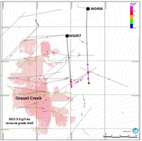 - Hole WG456, located 250 meters north-east of the Gravel Creek resource area, reported individual assays up to 34.9 g/t Au and 2800.0 g/t Ag as reported in Company news release dated November 21, 2023.