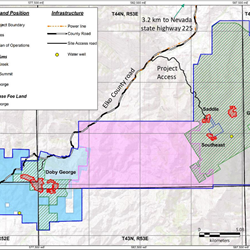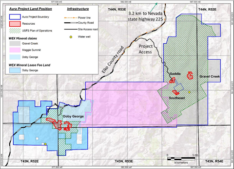 In addition, the Aura Project has well established infrastructure including year-round accessibility by highway and county-maintained road and nearby access to water and electricity (see Figure 2 below). Western Exploration has exploration, development, and mining rights on 930 hectares of privately owned land through a mineral lease agreement with a local landowner and may purchase those fee lands at any time for the development of Doby George.